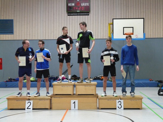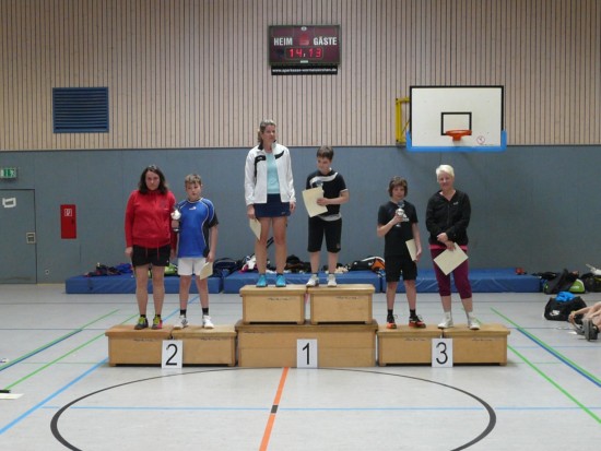Wie bereits im letzten Jahr (...und da nur ganz knapp geschlagen...) wurden Matthi und Matthias Post mit 5 Siegen Zweite im A-Feld. Es folgten 3 Familienteams mit jeweils 4 Siegen, von denen auf Grund der besseren "Buchholz-Zahl" Marc und Tim Goos als Dritte den Sprung aufs Siegerpodest schafften.