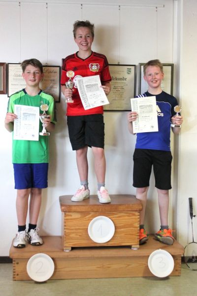 Ein schönes Bild gab es bei der Siegerehrung im B-Feld der JE U13, standen doch mit Malte Issel (1.), Moritz Schreiter (2.) und Ron Schöneweiß (3.) drei unserer "Recken" auf dem Treppchen.