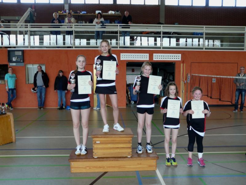 Bei den Jungen U15 wurde Rick Wagener seiner Favoritenrolle gerecht und gewann alle Spiele. Spannend wurde es im Kampf um Platz 2. Hier konnte sich Florian Wilde mit einem Sieg in der Verlängerung des 3. Satzes gegen Moritz Schreiter durchsetzen. 21:16, 15:21, 24:22 sind die Ergebnisse der Sätze - eine ganz knappe Sache!
