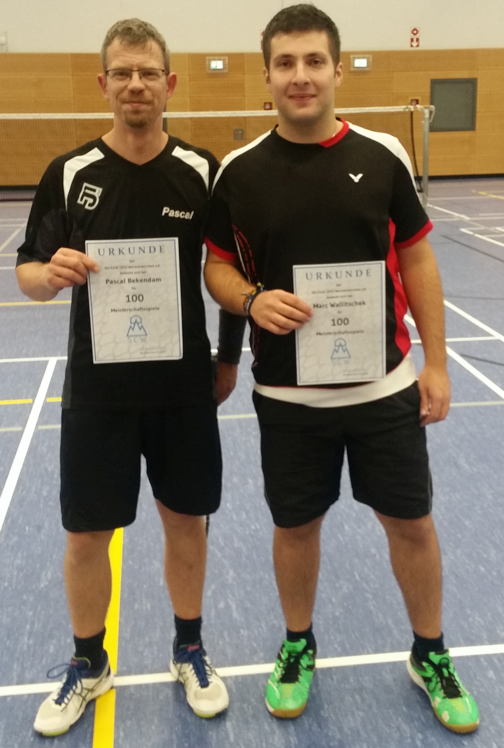 Am 07.10.2017 wurden zwei weitere Jubilare geehrt. Pascal Bekendam absolvierte am letzten Spieltag der Vorsaison sein 100. Meisterschaftsspiel. Marc Wallitschek legte gestern mit seinem 100. Einsatz nach.