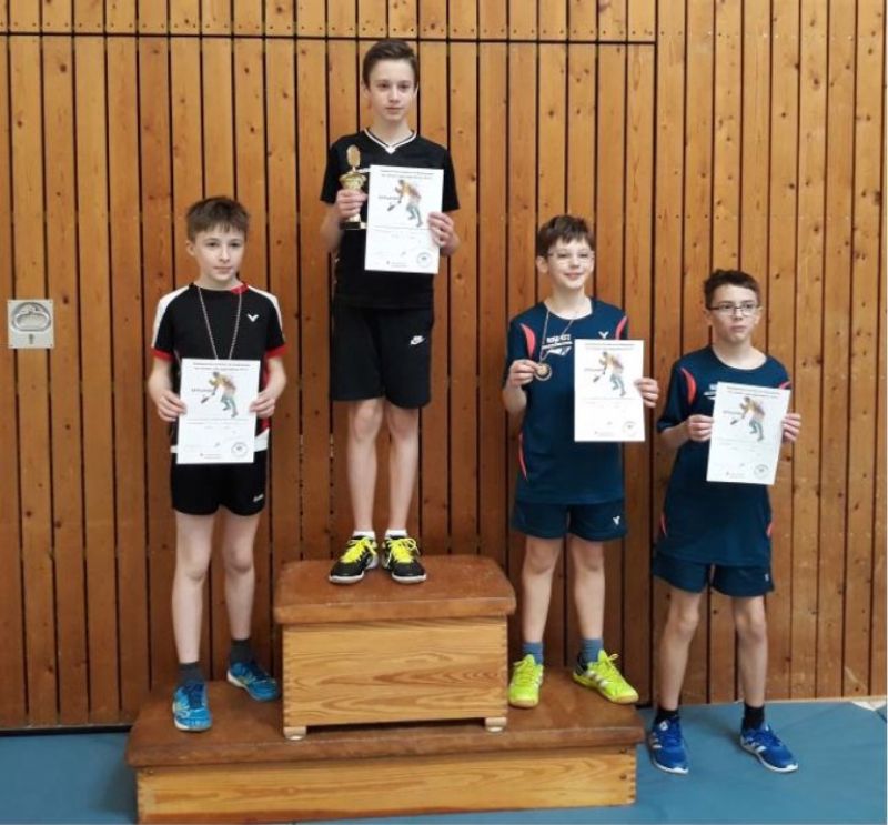 Im B-Feld der U13 war Fynn Senss nicht aufzuhalten. Er konnte alle Spiele gewinnen, auch wenn ihm Ben Webeling (DTV) sowohl im Gruppenspiel als auch im Finale in jeweils 3 Sätzen alles abverlangte. Platz 3 holte Luca Javornik (DTV) vor unserem Henry Madel .