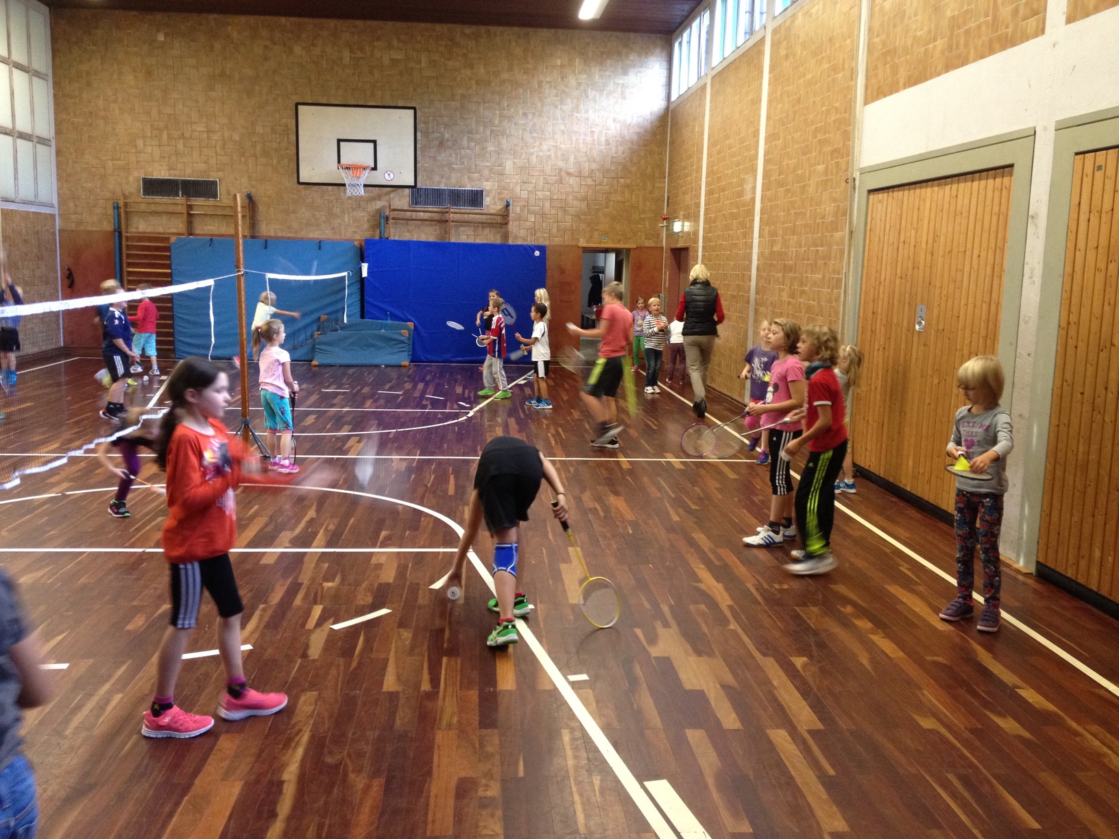 Welch ein Gewusel in der Tenter Turnhalle. Unsere Badminton-Abteilung war eingeladen, um die Sportart Badminton vorzustellen. 26 Kinder der OGS Tente - von der 1. bis zur 4. Klasse - haben teilgenommen. Unsererseits waren dabei: Nadja, Matthi, Anna, Tom, Finn, Malte und Colin.