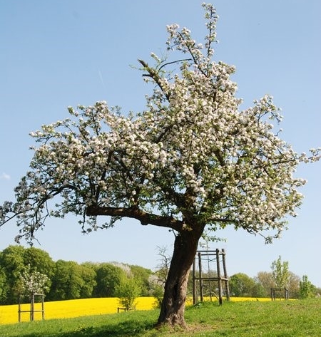 Ich möchte Euch über den "Leverkusener Obstweg" in der Ski-Club Variante führen. Die Kirschbäume werden dann sicherlich verblüht sein. Ich hoffe, die Apfelbäume zeigen sich dann wie auf diesem Bild.