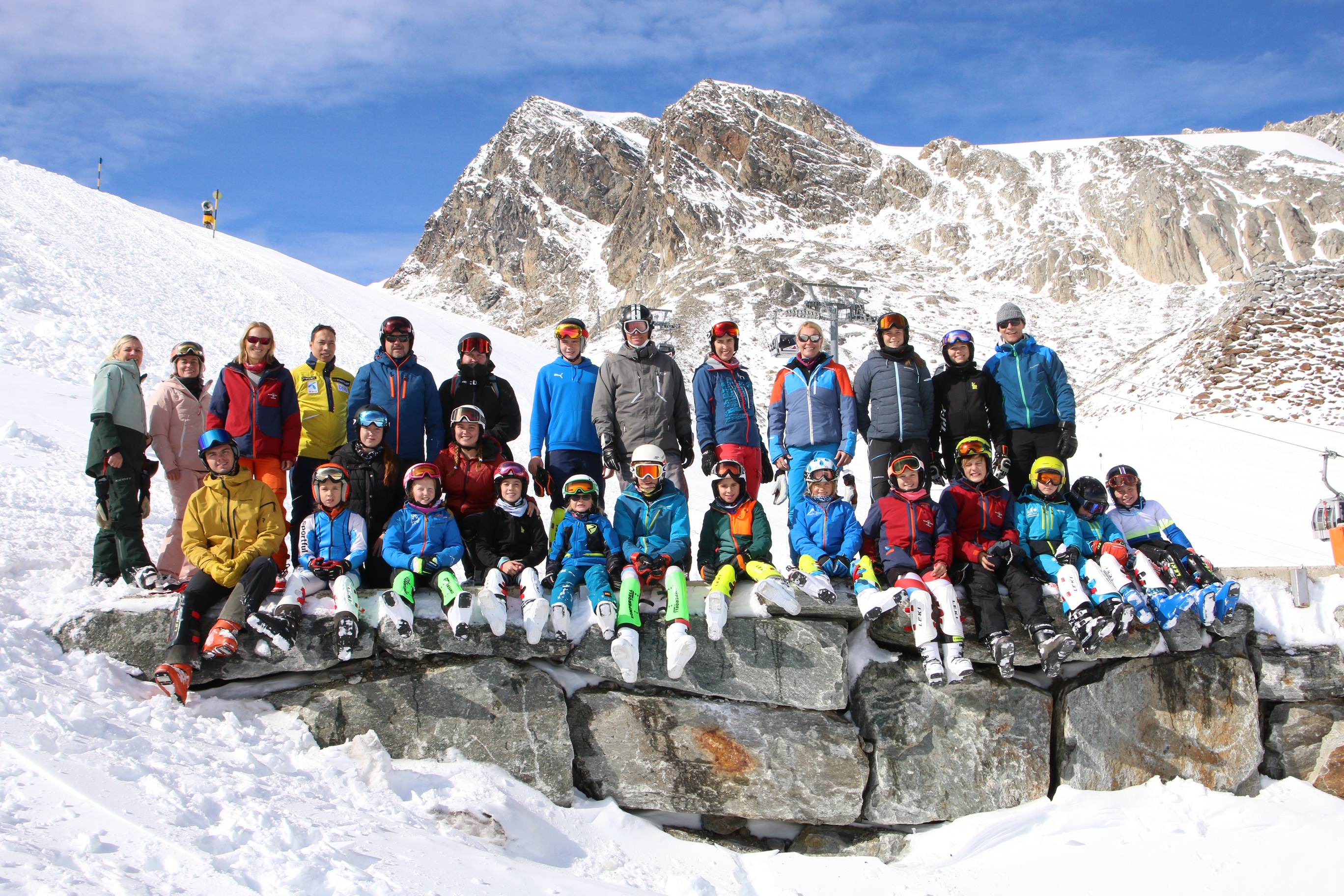 Mit insgesamt 33 Teilnehmern wurde auf dem Tiefenbachgletscher bei wunderbarem, sonnigen Wetter, aber kühlen Temperaturen auf perfekt präparierten Pisten Ski gefahren und im Stangenwald trainiert. Ulf und Lutz wurden dabei von Nina und Tina beim Training der Kids unterstützt.