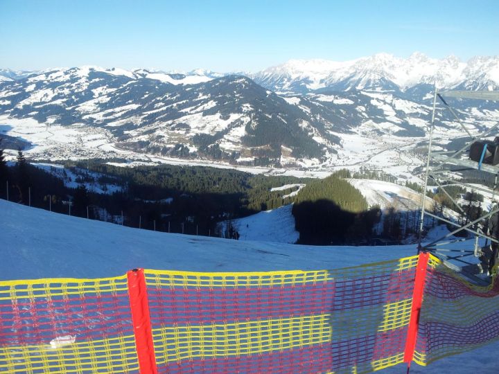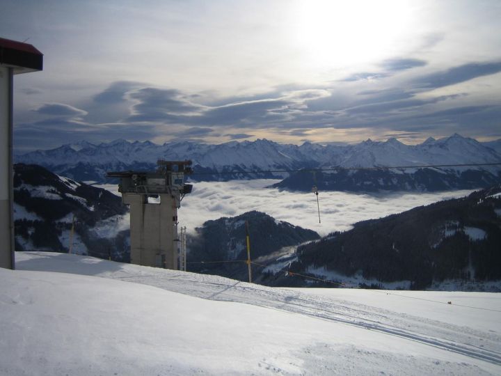 Das Skigebiet Kitzbühel/Kirchberg zusammen mit den Regionen Jochberg und Pass Thurn umfasst rund 170 Pistenkilometer, 53 Aufstiegsmöglichkeiten und 820 friedliche Skikanonen. Die Verbindung bildet seit 2004 eine Dreiseil-Umlaufbahn mit einem Bodenabstand von bis zu 400 Metern sowie einem enormen Spannfeld - von Stütze zu Stütze rund 2.500 Meter. Zugegeben ergriff mich auf der Fahrt ein leicht mulmiges Gefühl.