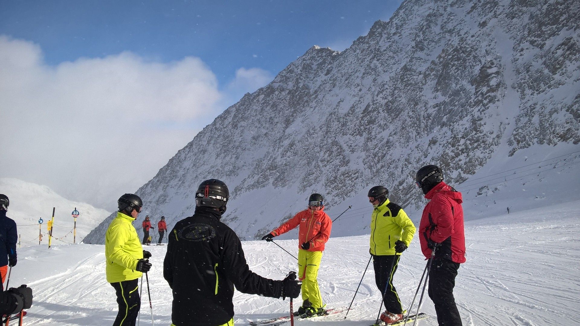 Der Sonntag war unser letzter Skitag. Wieder standen wir vor verschlossenen Türen der Gondel am Rettenbachgletscher (also kein Einzelfall!). Wie schon am Freitag machte uns der Wind einen Strich durch die Rechnung. Trotz schönem Wetter, war der Wind zu stark für den Liftbetrieb an den Gletschern. Allerdings war das Gigijoch offen und wir konnten dort fahren. Thema des Tages war das Fahrbild der Lehrer beim Vorfahren vor der Skigruppe. Erst einmal wurde in Zweiergruppen gefahren und gegenseitig Feedback gegeben.