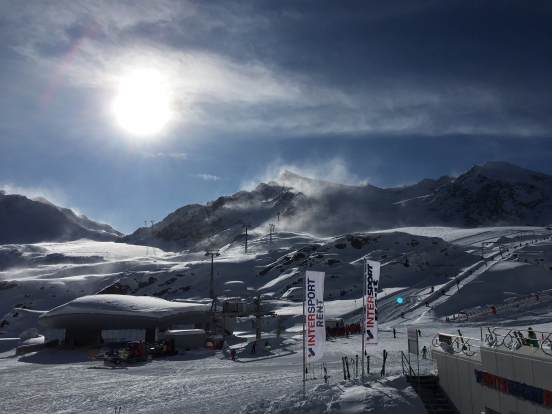 Am Rettenbachgletscher, gleich nebenan, konnten wir auch das Training der alpinen Weltcup-Fahrer bestaunen, die für den Saisonauftakt des Weltcups dort trainierten. So sah man immer mal wieder gespannt bei Fahrten von Stefan Luitz und Linus Straßer durch den Riesenslalom zu oder lief zufällig am Auto von Mikaela Shiffrin auf dem Parkplatz vorbei.