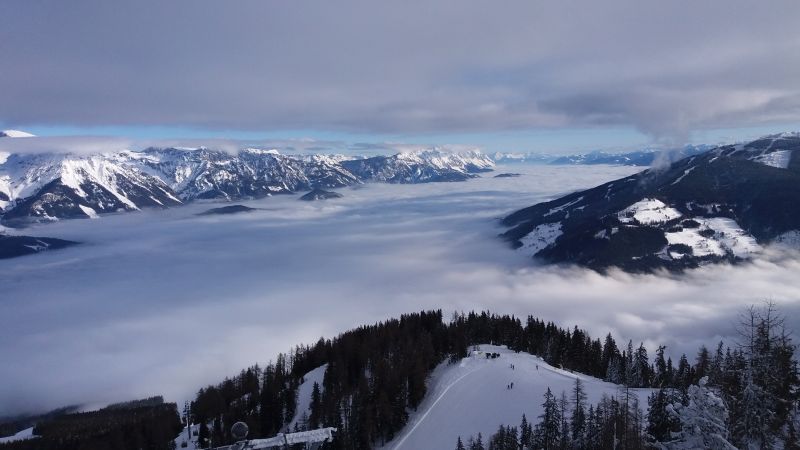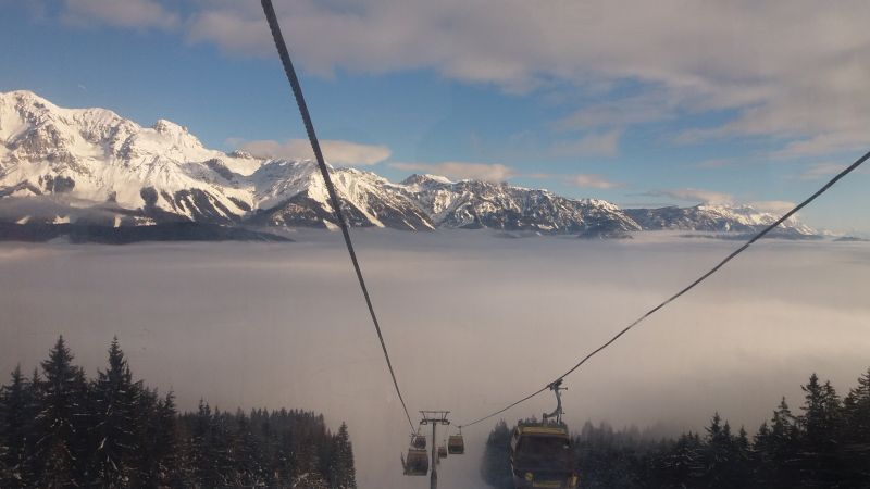 Das Wetter war allzeit skiläuferisch gut - heißt: der teilweise morgendliche Hochnebel löste sich über den Vormittag auf, wir bekamen freie Sicht auf das Dachsteinmassiv und die Sonne tat ihr Übriges.