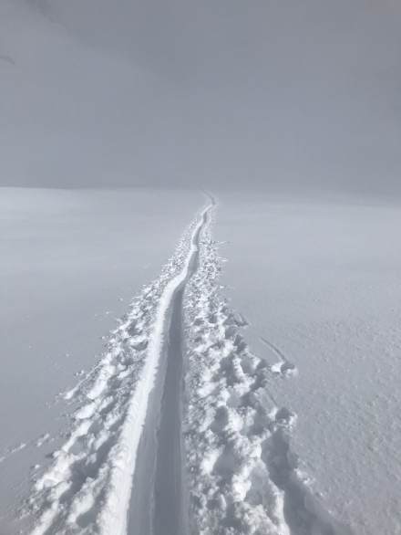 Der zweite Tag hielt dann viel Nebel für die ersten Lektionen mit Thilo bereit. Mittelgroße Radien, das „TURI-Prinzip“ und die Zerlegung unseres Schwungs in die einzelnen Bausteine beschäftigten uns den ganzen Tag. Fragen wie: „Mit welchen Sinnen nehmen wir das Skifahren wahr?" wurden besprochen. In der Theorie war klar, dass dies durch Sehen, Hören, Fühlen geschieht. Schmecken schlossen wir zunächst aus. Nach Thilos Aufforderung, endlich aus unserer Komfortzone herauszukommen und den ersten Stürzen („Wer beim Trainingswochenende nicht stürzt, war nicht nah genug an der Grenze…“) war dann aber schnell klar, dass man Skilaufen im wahrsten Sinne des Wortes auch schmecken kann.