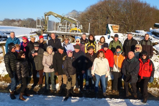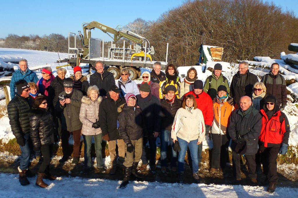 Danach geht es weiter über die Ortschaft Glöbusch und die umliegenden Wiesen und Wälder, die noch „tief“ verschneit sind. Oben auf der Höhe ist es Zeit für ein Erinnerungsfoto.