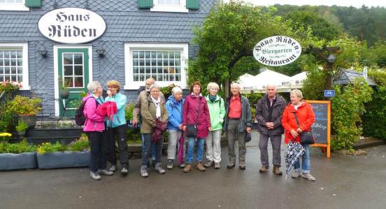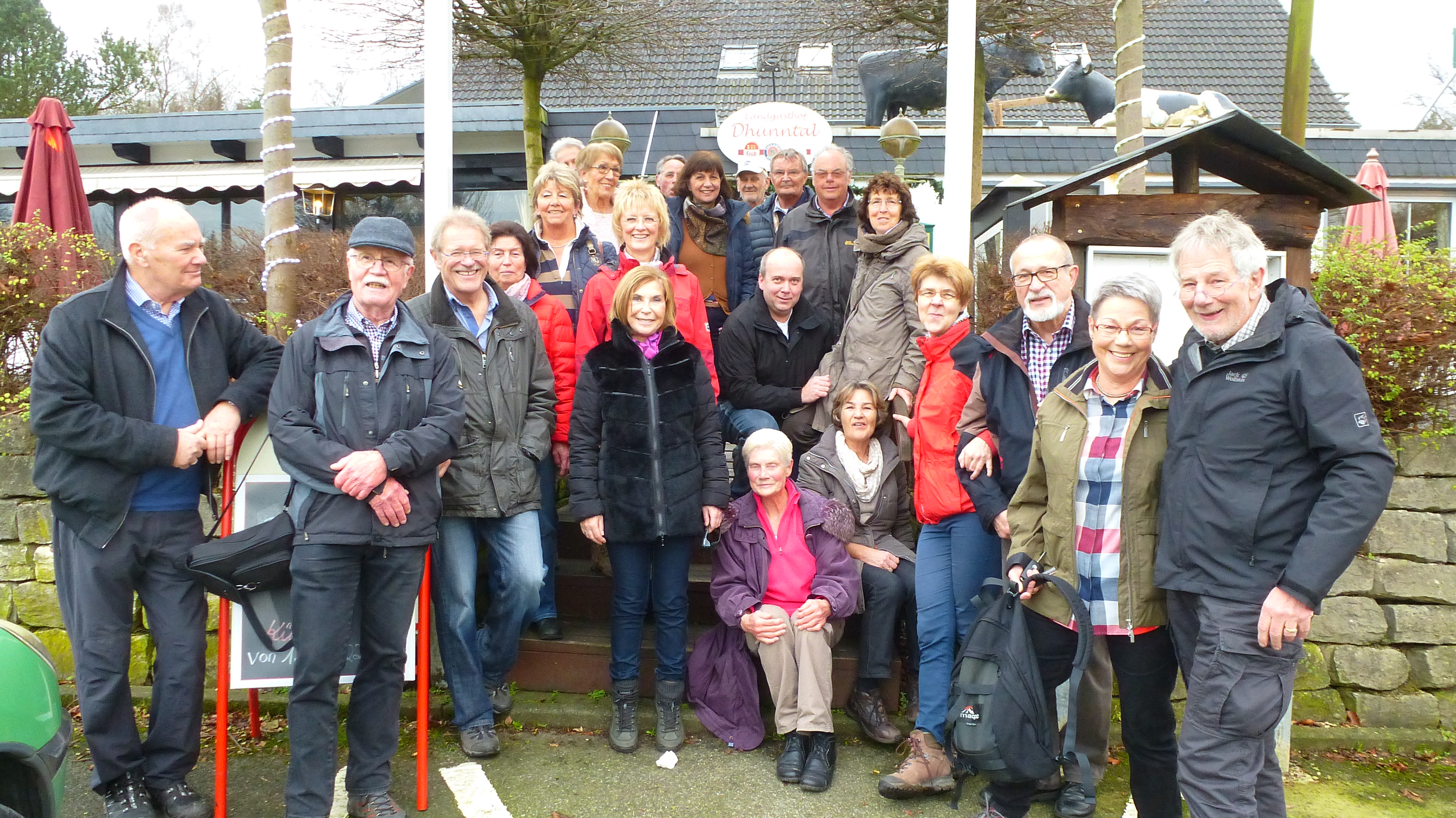 Ab 12:30 trafen vor dem Lokal „Landhaus Filde“ immer mehr Teilnehmer ein, im Ganzen waren dann 22 Skiclub-Mitglieder anwesend, obwohl um uns nur Nebel war, jedoch kein Regen.