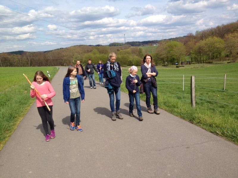 Bei perfektem Ausflugs- und Wanderwetter - sonnig, nicht zu warm und nicht zu kalt - trafen wir uns mehr oder weniger übernächtigt gegen 14 Uhr in Hückeswagen. Wir, das war eine Gruppe von rund 15 Erwachsenen und ebenso vielen Kindern, altersmäßig bunt gemischt von 6 – 66+. Eltern mit Kind und Kegel - pardon Hund, Opa und Oma mit Enkel. Halt das gesamte bunte personifizierte Vereinsleben, in diesem Fall hauptsächlich rekrutiert aus der Familien-Osterfahrt.