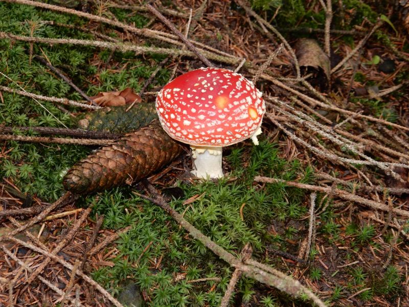 sich herbstlich färbende Laubwälder und vorbei an vielen Pilzen, wobei Fliegenpilze am ehesten ins Auge stachen.