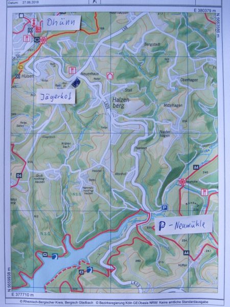 Wir treffen uns um 13.00 Uhr auf dem Wanderparkplatz Neumühle am Zufluß der Großen Dhünn (siehe Karte).